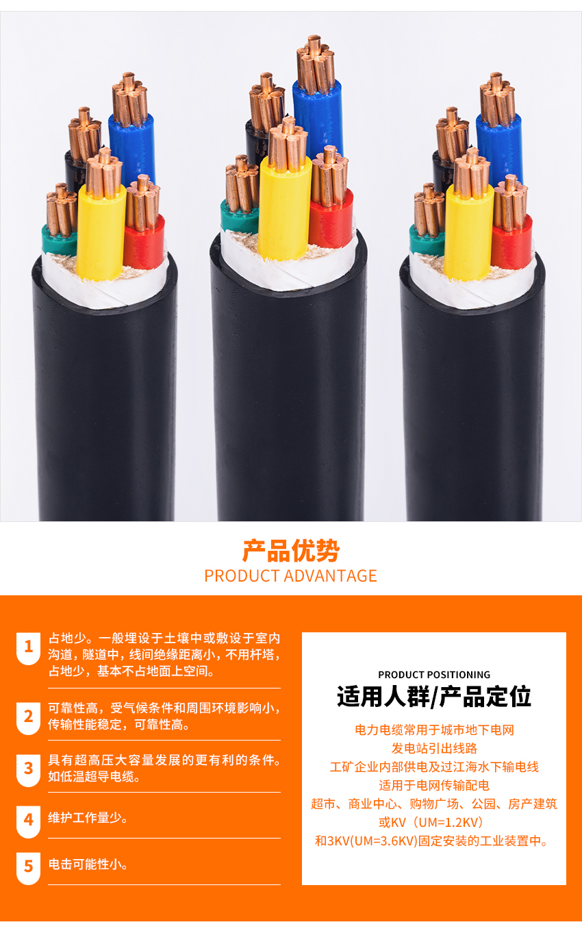 電力電纜是用于傳輸和分配電能的電纜,本產(chǎn)品適用于配電網(wǎng)或工業(yè)裝置中額定電壓1kV(Um=1.2kV)和3kV(Um=3.6kV)固定安裝的擠包絕緣電力電纜。電力電纜常用于城市地下電網(wǎng)、發(fā)電站引出線路、工礦企業(yè)內(nèi)部供電及過(guò)江海水下輸電線。在電力線路中,電纜所占比重正逐漸增加。電力電纜是在電力系統(tǒng)的主干線路中用以傳輸和分配大功率電能的電纜產(chǎn)品,各種絕緣的電力電纜。