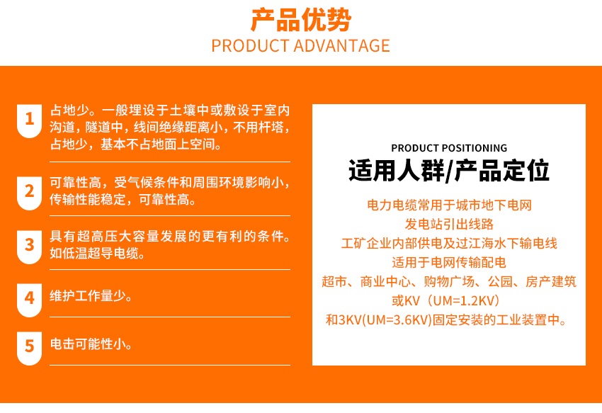 電力電纜是用于傳輸和分配電能的電纜,本產(chǎn)品適用于配電網(wǎng)或工業(yè)裝置中額定電壓1kV(Um=1.2kV)和3kV(Um=3.6kV)固定安裝的擠包絕緣電力電纜。電力電纜常用于城市地下電網(wǎng)、發(fā)電站引出線路、工礦企業(yè)內(nèi)部供電及過江海水下輸電線。在電力線路中,電纜所占比重正逐漸增加。電力電纜是在電力系統(tǒng)的主干線路中用以傳輸和分配大功率電能的電纜產(chǎn)品,各種絕緣的電力電纜。